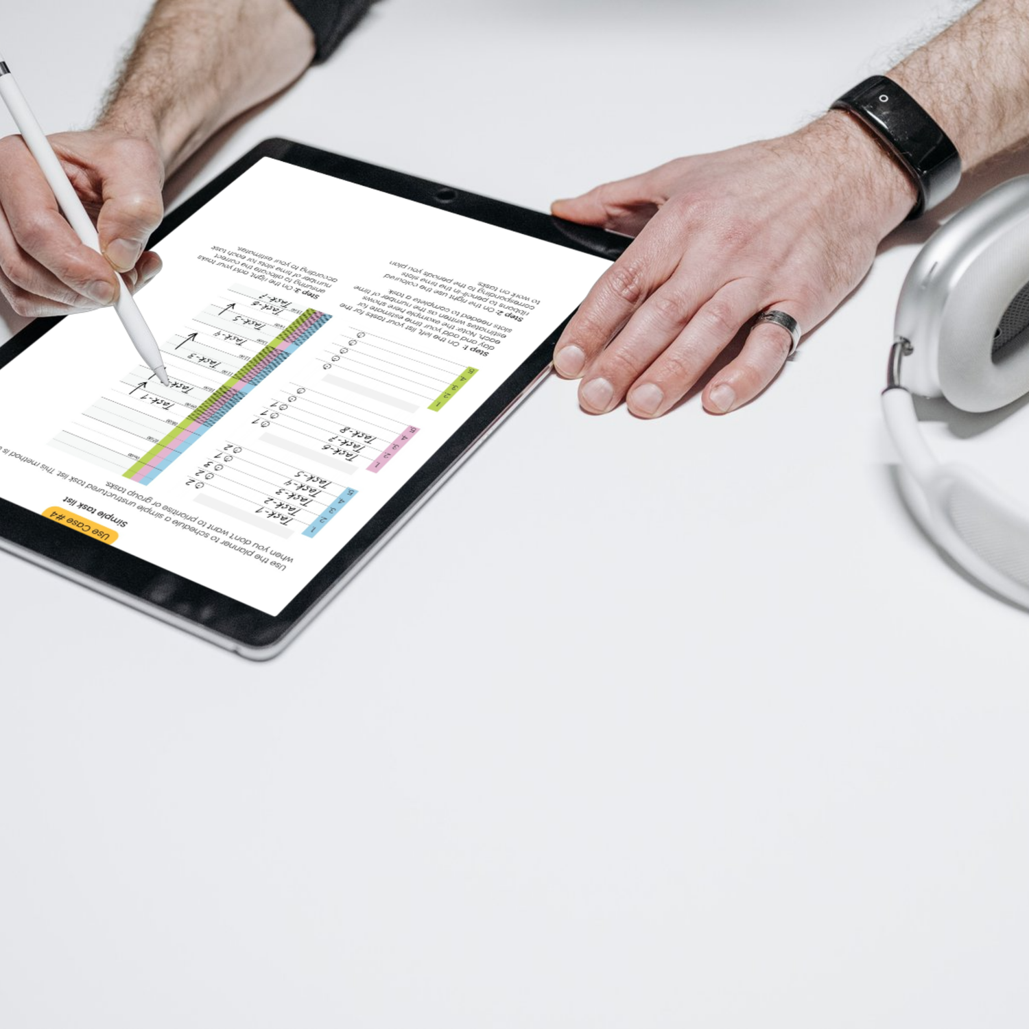 Works on IOS and Android tablets with a compatible annotations app, and is also printable.